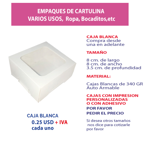 4.89 Caja 8*8*3.5 color roja con ventana$0.30