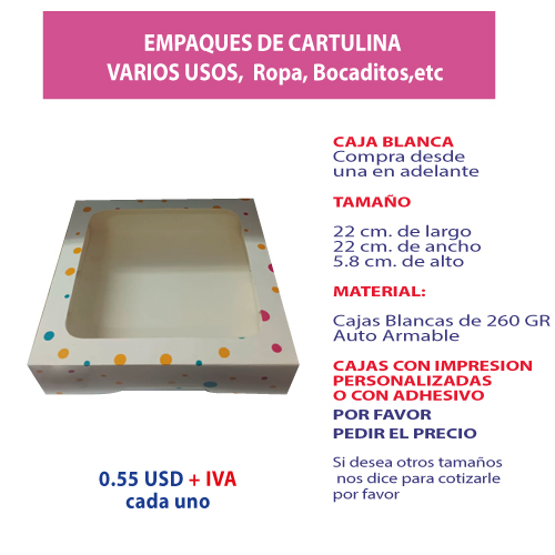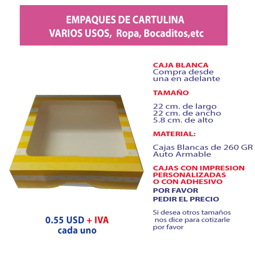 3.63 Caja 22*22*5.8 impresión genérica con ventana$0.55